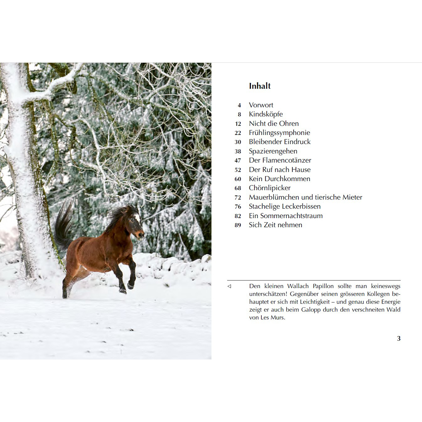Das Büchlein "Kleine Pferdegeschichten", immer mit grossartigen Fotos illustriert, erzählt Lustiges und Trauriges, stellt Neuankömmlinge vor, berichtet von Freundschaften unter den Pferden, von schlitzohrigen Ponys und stoischen Eseln oder rührt mit Liebesgeschichten und Abschieden von Pferdepersönlichkeiten. Erhältlich ist es in den Sprachen Deutsch, Französisch und Italienisch, der Preis beträgt Fr. 15.–.