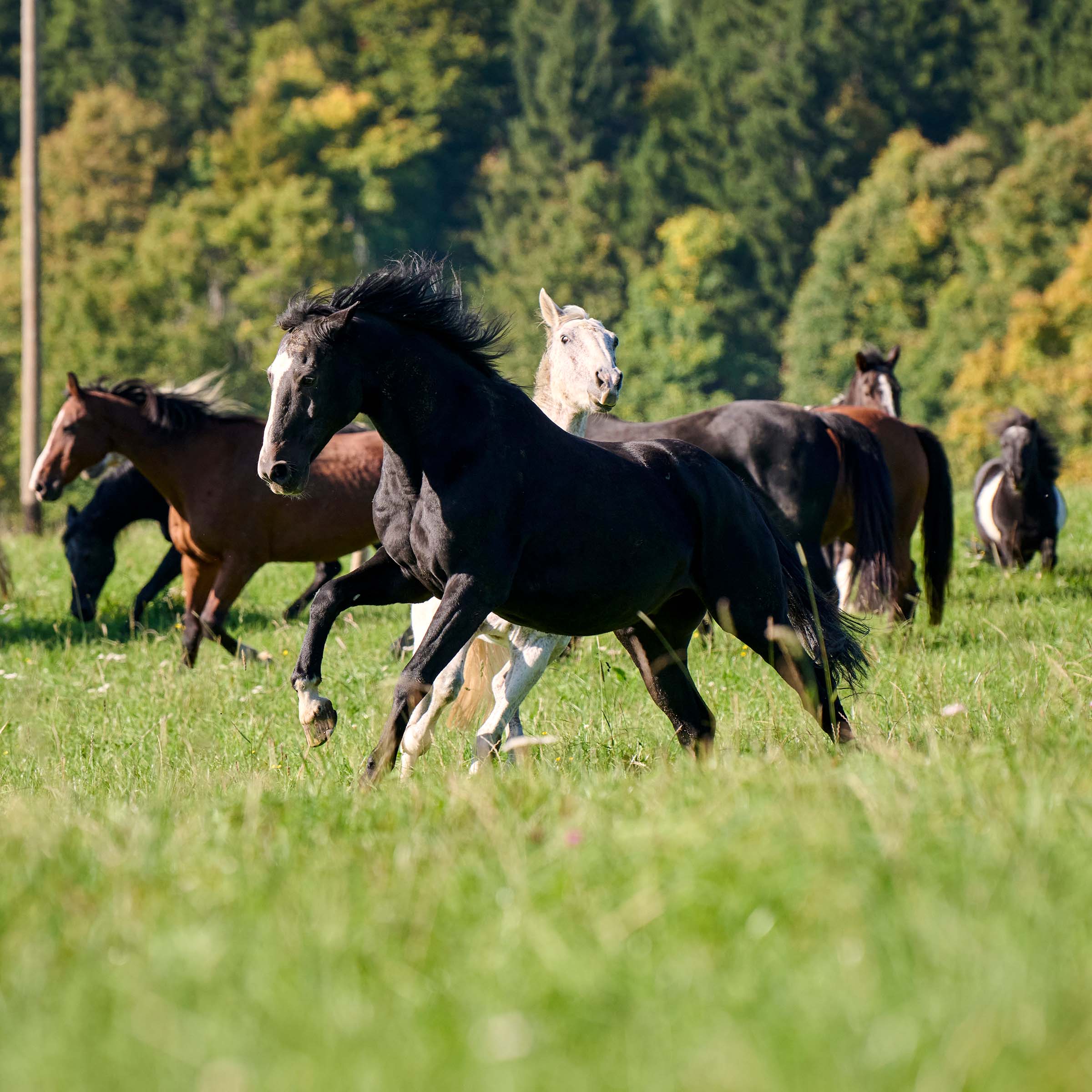 Seine edle Abstammung ist wohl nicht ganz unschuldig an Conans schönem Aussehen. Der elegante Wallach wurde vierjährig von einer Dame, die sich auf den ersten Blick in ihn verliebte, bei einem Pferdehändler gekauft. Das Paar nahm an Springturnieren teil, doch noch lieber genossen sie lange Ausritte. Seine Besitzerin wollte Conan einen artgerechten Lebensabend sichern und so kam der Hannoveraner am 16. November 2021 nach Le Roselet. Gross und gesund hat sich Conan schnell in die Herde integriert. Obwohl er nicht dominant ist, macht er den rossigen Stuten den Hof. Seine imposante Statur erspart ihm viele Auseinandersetzungen mit anderen Wallachen. Conan ist sehr anhänglich und kommt angelaufen, wenn ein Pfleger ihn ruft. Hingegen verschmutzt er regelmässig seine Box.