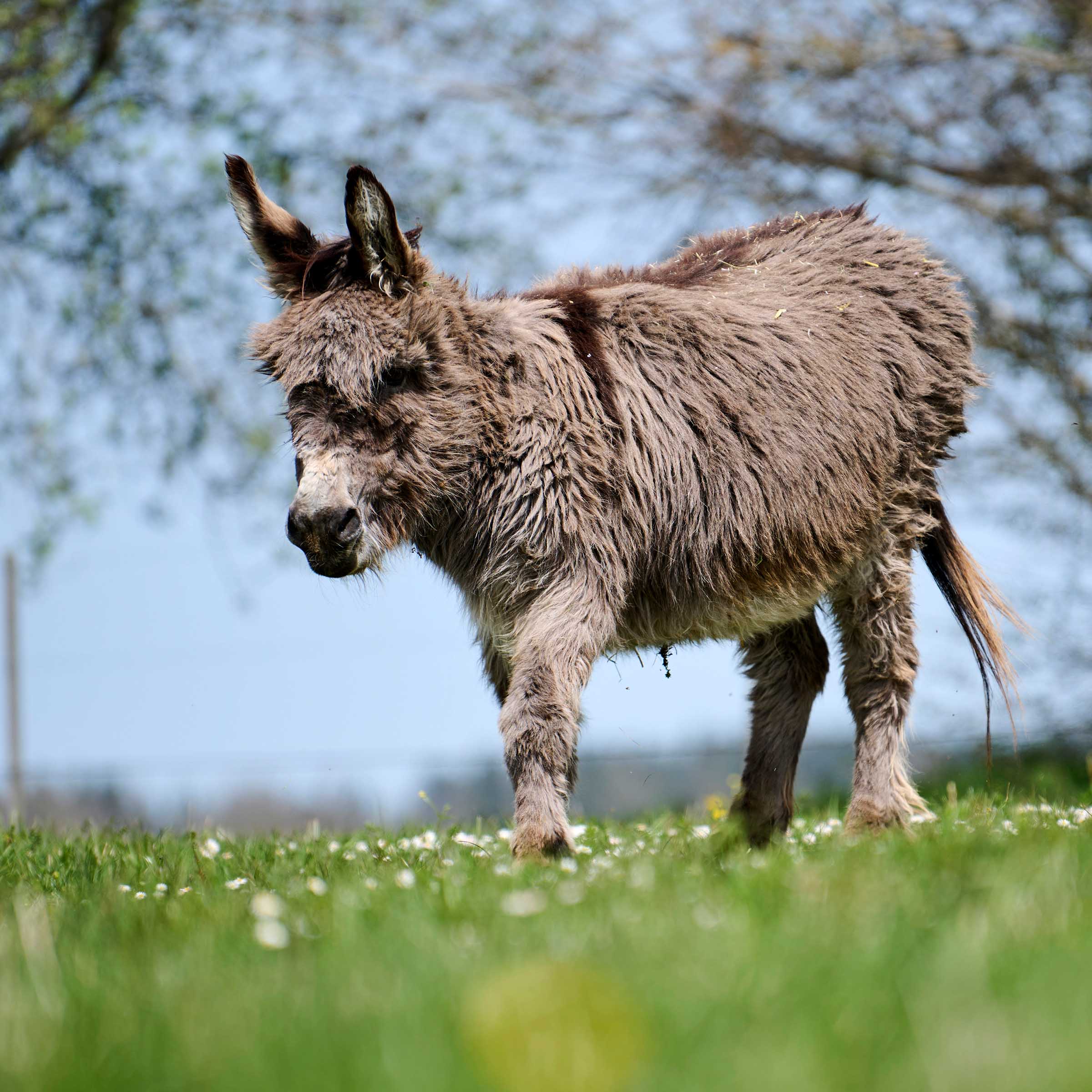 Elio, ein kleiner, grauer Esel-Wallach, wurde 1996 geboren. Dreijährig kam er zu seinen neuen Besitzern, zusammen mit dem etwas jüngeren Pablo. Die nächsten vier Jahre verbrachten die beiden Esel-Herren in einem Freilaufstall in der Region Basel. Das Ehepaar unternahm viele Spaziergänge und bereitete die Langohren auf mehrtägige Trekkingferien vor. 2002 war es dann soweit, eine grosse Trekkingtour stand bevor. Leider verstarb Pablo auf der Reise, vermutlich an Herzversagen. Doch die Besitzer fanden einen neuen Freund für Elio, welcher erneut Pablo getauft wurde. Einige Jahre später siedelte die Familie für fast zehn Jahre nach Deutschland um auf einen wunderschönen Bauernhof, wo Elio und Pablo eine tolle Zeit mit engem Familienanschluss genossen. Aus gesundheitlichen Gründen musste die Familie den Hof jedoch aufgeben und so kamen die beiden Esel zusammen nach Maison Rouge. Wie fast immer bei den Eseln, ging das Kennenlernen ganz sanft und ohne – äusserlich erkennbare – Aufregung vor sich. Elio ist ein liebevoller Zeitgenosse, der sich über Besuch freut und sich sehr gerne streicheln lässt. Wenn ihn die Pfleger bürsten, ist er jedes Mal entzückt.
