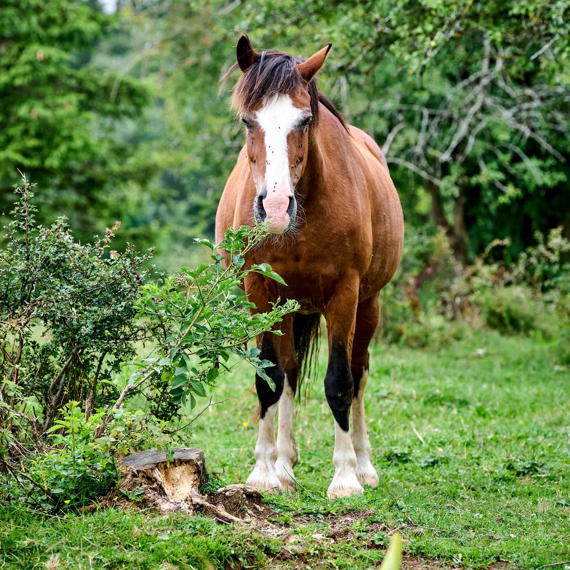 Elvia ist eine braune Stute, die 1999 in Graubünden geboren wurde. Eine schöne, breite weisse Blesse und vier weisse Beine verleihen dieser Freibergerin ein elegantes Aussehen. Elvia wurde von ihrem letzten Besitzer im Alter von 4 Jahren gekauft. Die ruhige, liebevolle und anspruchslose Stute bereitete ihm viel Freude, egal ob sie geritten oder gefahren wurde. Im Jahr 2010 kam Apollo in den Stall. Unverzüglich nahm der energische Wallach die Stute in seine Obhut. Die beiden verstanden sich sehr gut. Leider verstarb ihr Besitzer Ende 2022 unerwartet und hinterliess die Familie in grosser Trauer und Sorge über die Zukunft der beiden Pferd. Es wurde ein Hilferuf an unsere Stiftung gerichtet. So konnten Apollo und Elvia im Frühjahr 2023 in unser Heim Maison Rouge umziehen.