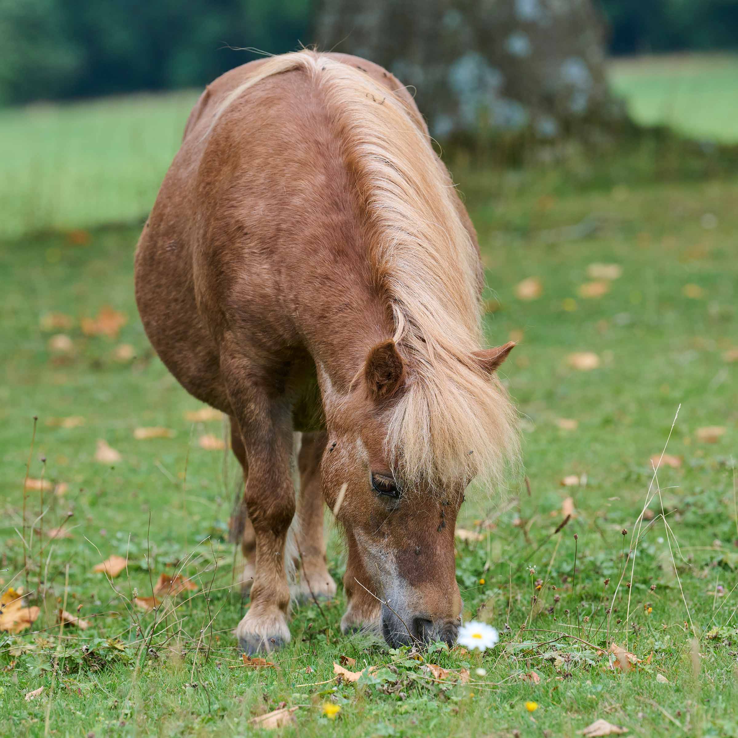 Fabienne und Falco sind zwei fuchsfarbene Shetlandponys von 76cm bzw. 78cm Höhe. Während Fabienne helle Mähne und Schweif hat, ist Falcos Langhaar in derselben Farbe wie sein Fell. Mit ihrer letzten Besitzerin, welche die Ponys seit 2002 beherbergte, waren sie öfters zu Gast an der BEA in Bern. Die beiden sanftmütigen Ponys teilten sich ihren Stall ab 2009 mit 3 Amerikanischen Minipferden. Beim Umzug in die Stiftung im Jahr 2021 trennte sich die Gruppe und Falco kam mit Fabienne nach Le Roselet. Ihre drei Freunde geniessen die Pensionierung in Maison Rouge. Während Falco hier den Chef spielt, machte sich Fabienne auf Entdeckungsreisen ausserhalb des Zaunes. Mit einem zusätzlich montierten Draht am Weidezaun bleibt nun auch Fabienne innerhalb der Abzäunung.
