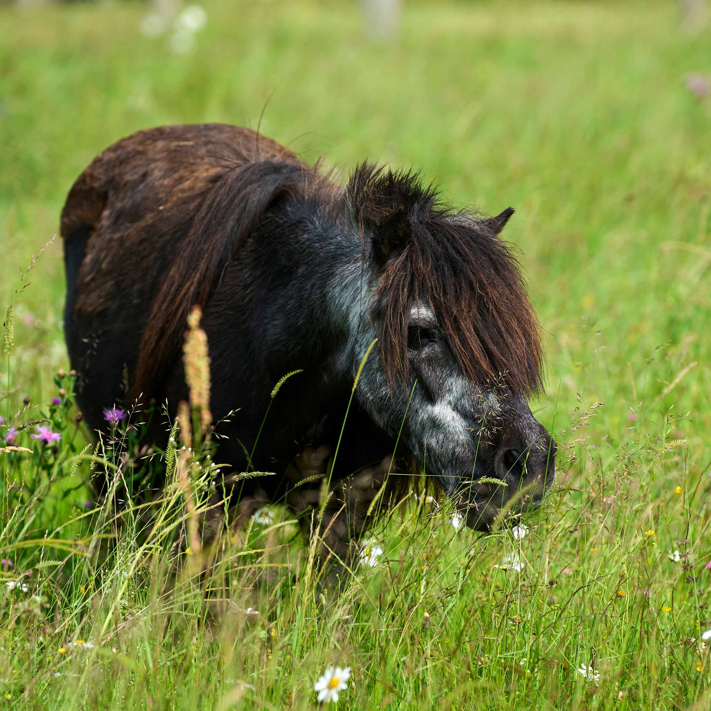 Indy ist ein schwarzes Shetlandpony, ca. 100 cm gross. Sein geschätztes Geburtsjahr ist 1989. Indys Besitzerin lernte ihn bei einem Bauern kennen. Im Jahr 2014 änderte sich dort auf dem Hof die Situation und Indy musste schnell einen neuen Platz finden. Die Dame kaufte ihn und stellte ihn zum Pferd, welches sie bereits besass. 2015 bekam Indy einen aggressiven Pilz auf seinem linken Auge. Schlussendlich wurde er in die Klinik nach Bern gebracht, wo man leider nichts anderes tun konnte, als das Auge zu entfernen. Diese Operation war sehr teuer, und die Besitzerin war nicht mehr in der Lage für Indys Pflege zu bezahlen, so dass sie ihn schweren Herzens abgeben musste. Indy kam deshalb 2015 in die Stiftung für das Pferd.