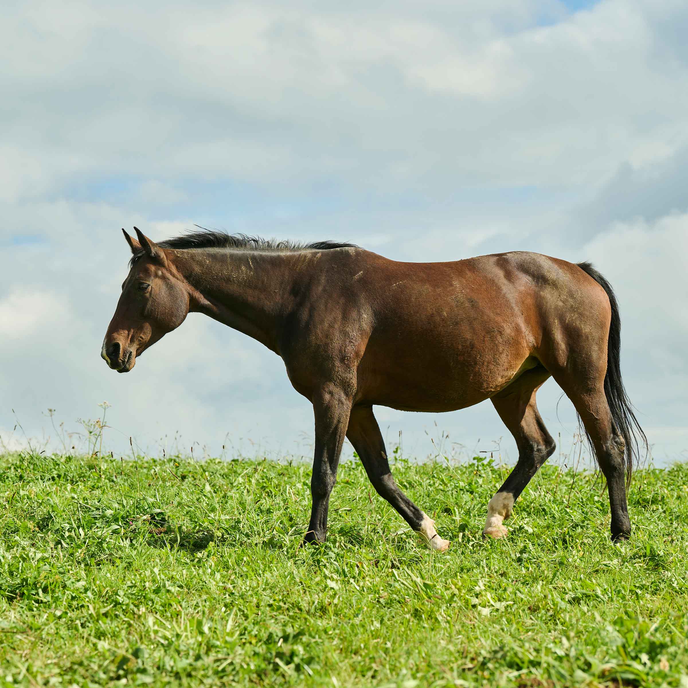 Innovation B ist eine 172cm grosse, braune Irländer-Stute. Nova, so ihr Rufname, ist auf der grünen Insel geboren und wurde später über einen Händler in die Schweiz importiert. Obwohl ihre Rasse und Abstammung sie für den Sport prädestinierten, war Nova sehr scheu und daher ungeeignet, um an Wettkämpfen zu brillieren. Ihre stete Unsicherheit war auch der Grund, warum die liebe Braune mehrmals den Besitzer wechselte bevor sie 2013 von ihrer letzten Besitzerin übernommen wurde. Nach vielen gemeinsamen Jahren entliess die Dame Novas Stallgenosse in den Ruhestand auf dem Jeanbrenin. Nova selbst war noch zu jung, um in der Stiftung für das Pferd aufgenommen zu werden und verbrachte knapp 2 Jahre auf einer Weide im Vorruhestand, bevor sie im Sommer 2024 nach Maison Rouge ziehen konnte.