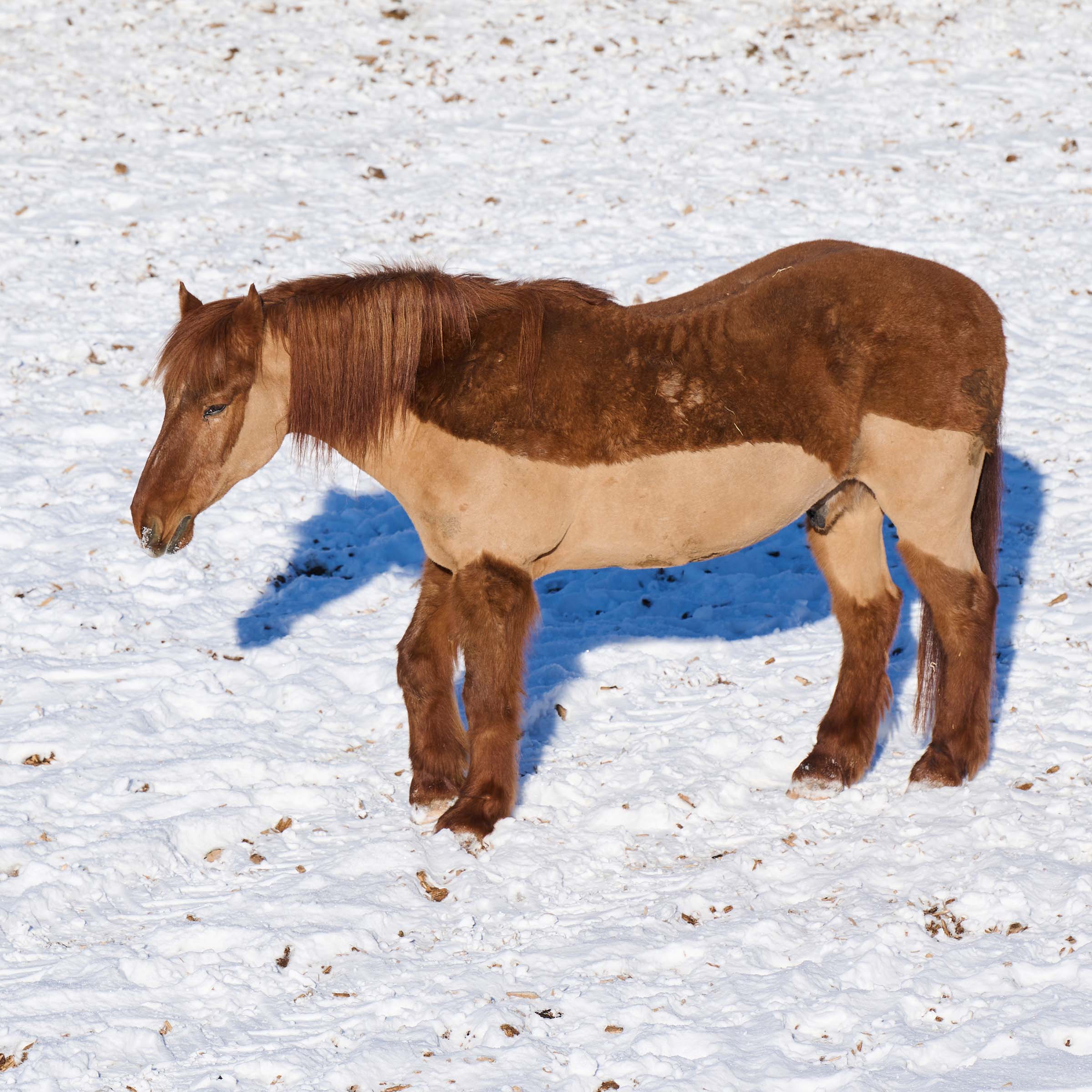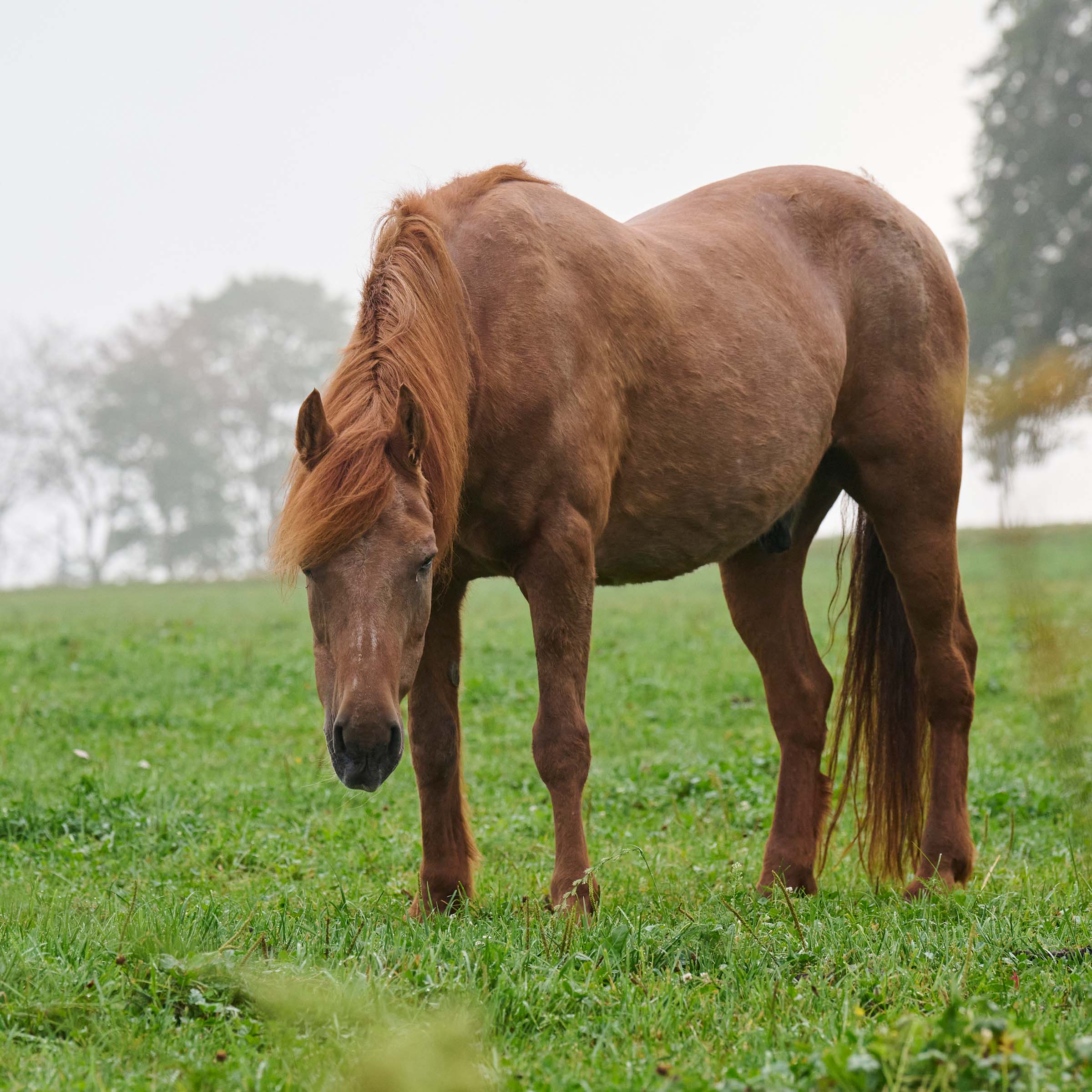 Der fuchsfarbene Freiberger-Wallach kam im November 2011 nach Le Roselet. Leandro wurde als dreijähriges vernachlässigtes Pferd von seiner Besitzerin erworben. Dank guter Pflege und viel Geduld im Umgang mit ihm, entwickelte sich der 144 cm grosse Freiberger zu einem verschmusten Pferd. 2011 durfte er zu uns in den Jura reisen, da sich seine schwer erkrankte Besitzerin nicht mehr um ihre Tiere kümmern konnte. Das Einleben war für Leandro stressig, nur langsam gewöhnten sich die beiden an ihre neue Umgebung. Mittlerweile geniesst der muntere Freiberger allerdings sein Leben in der Herde und auf den Juraweiden in vollen Zügen. Wir wünschen ihm noch viele schöne Tage bei uns.