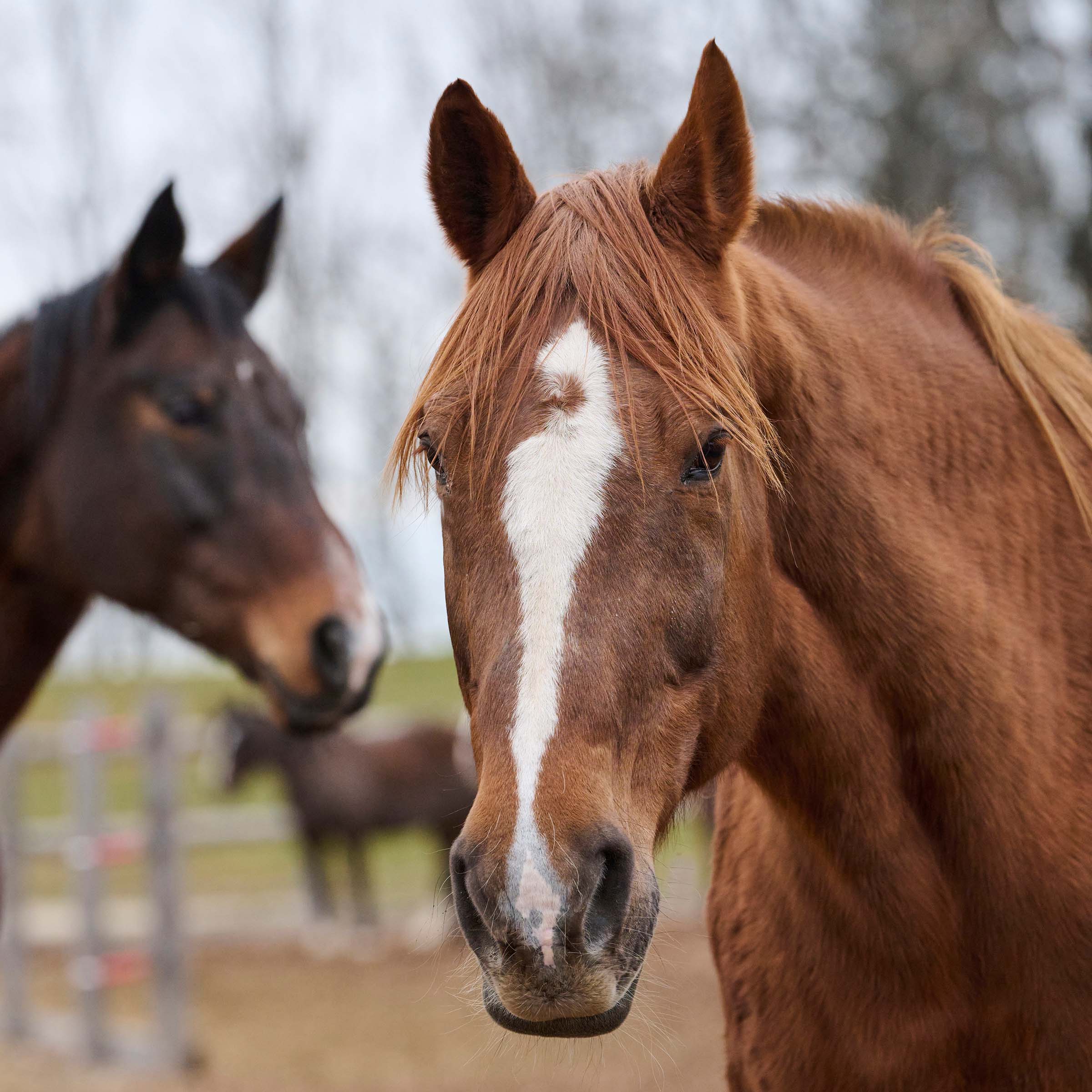 Libra hat den Feldtest als Dreijährige erfolgreich absolviert. Nach einem tragischen Unfall wurde sie jedoch nicht mehr geritten, sondern nur noch vom Boden aus gearbeitet oder als Handpferd auf Ausritten mitgenommen. Sie lebte mit ihrer Halbschwester und ihrem Bruder – nachts in der Box, tagsüber mit freiem Zugang zu den Weiden. Nach drei Aufenthalten im Tierspital entwickelte Libra Angst vor Tierärzten. Aufgrund ihrer sensiblen Verdauung ist die grosse Stute besonders bei Wetterwechsel anfällig für Koliken. Libra hat einen dominanten Charakter und war bereits in ihrer früheren Gruppe die Leitstute. Wir freuen uns, die beiden Schwestern seit Sommer 2025 zu unseren Schützlingen zählen zu dürfen.