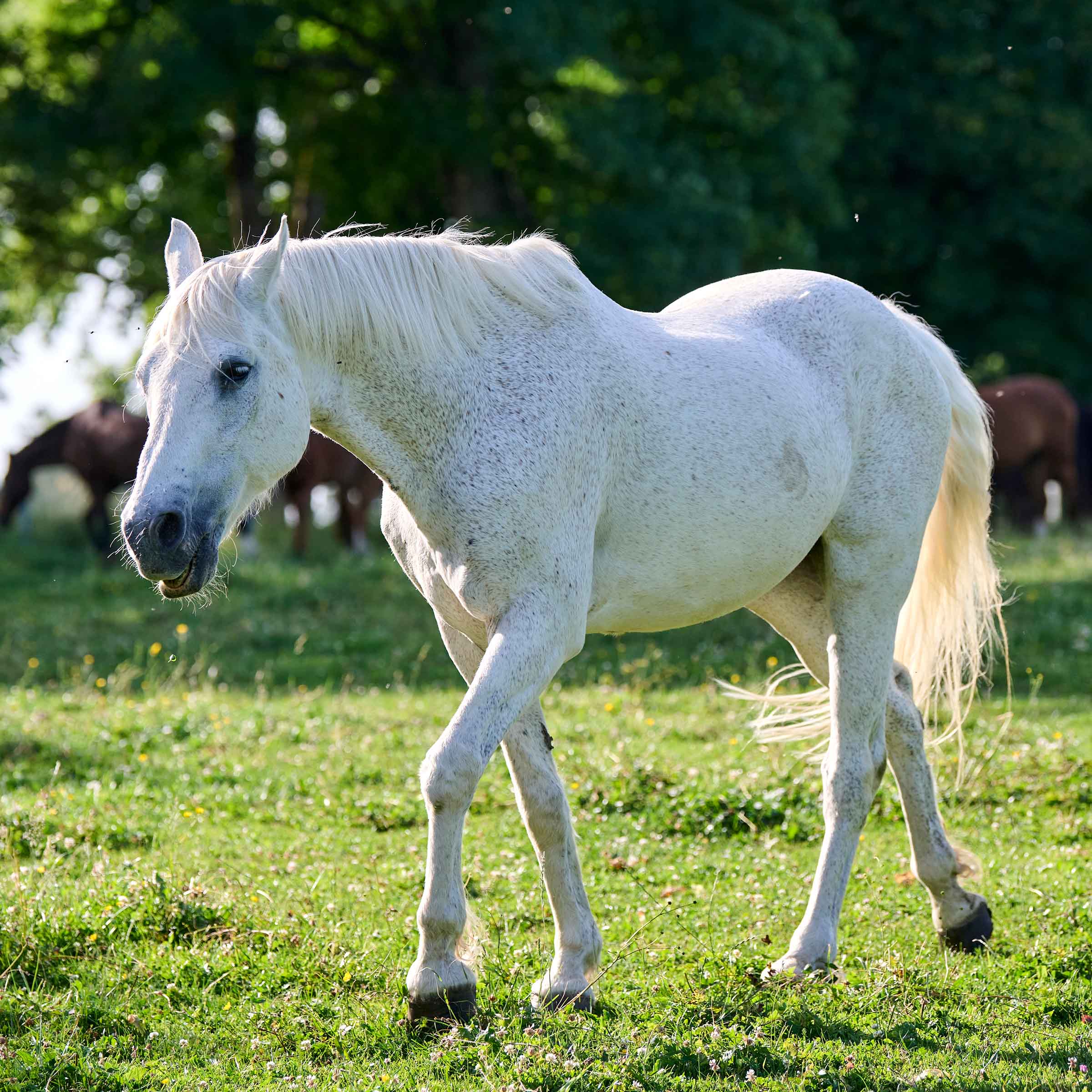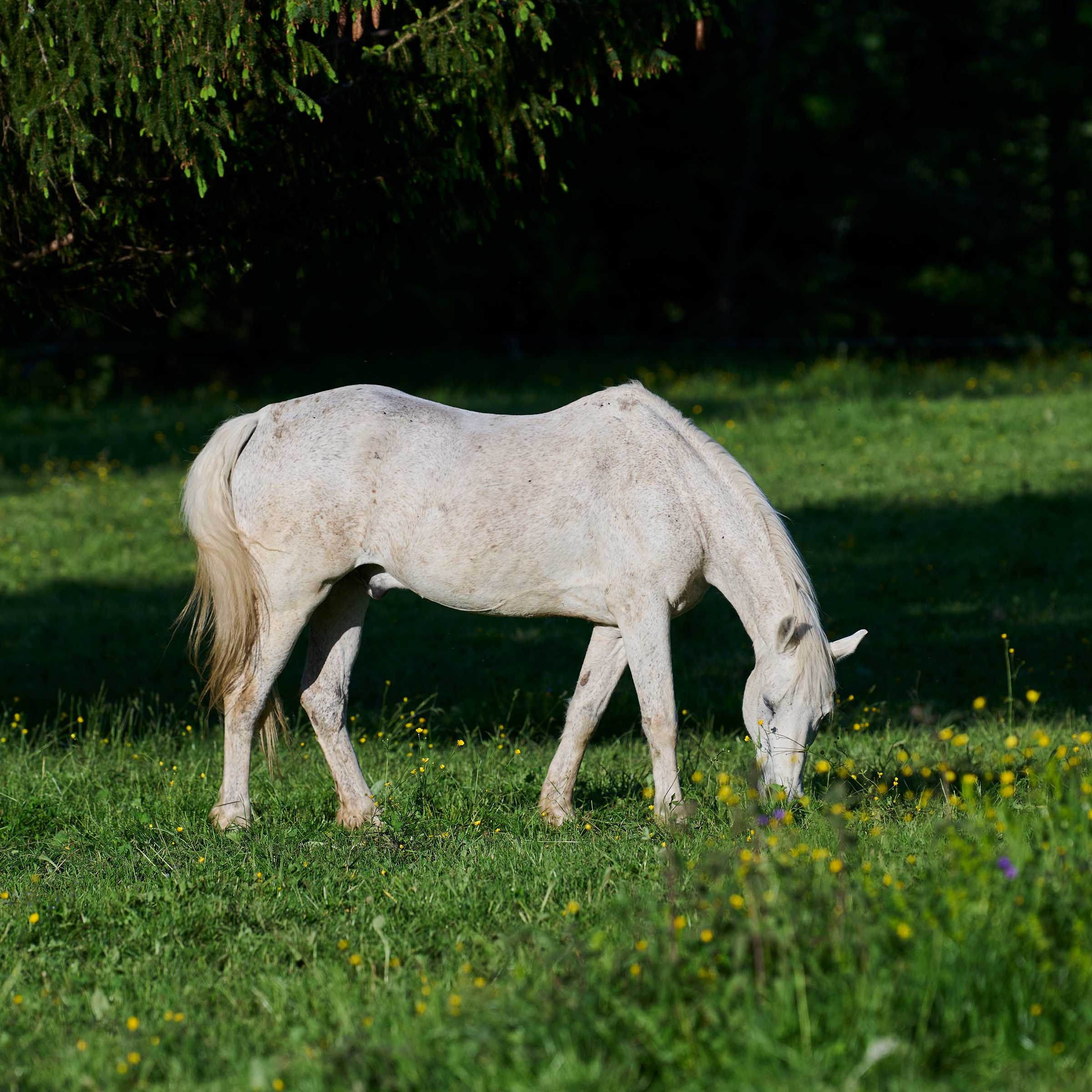 Über Lillefots Jugend ist uns nichts bekannt, ausser dass er von drei jungen Reitern geritten wurde, die er vom einfachen Springen bis zur Teilnahme an den Europameisterschaften der Vielseitigkeit ausgebildet hat. Seine letzten Besitzer kauften dieses talentierte, kooperative und sehr anhängliche Pony 2013 für ihre Töchter. Lillefot war ein ideales Reitpferd, das von der Familie sehr geschätzt und verwöhnt wurde, die ihm einen wohlverdienten Ruhestand an einem ruhigen Ort bieten wollte. So ist Lillefot im Oktober 2020 zu uns gekommen. Lillefot verliert nie die Nerven. Von ruhiger Natur und gewohnt, in einer Herde zu leben, weiss er von seinen Artgenossen respektiert zu werden, ohne jemals unangenehm zu sein. Dieses Pferd bleibt fast unbemerkt, weil es so unkompliziert ist.