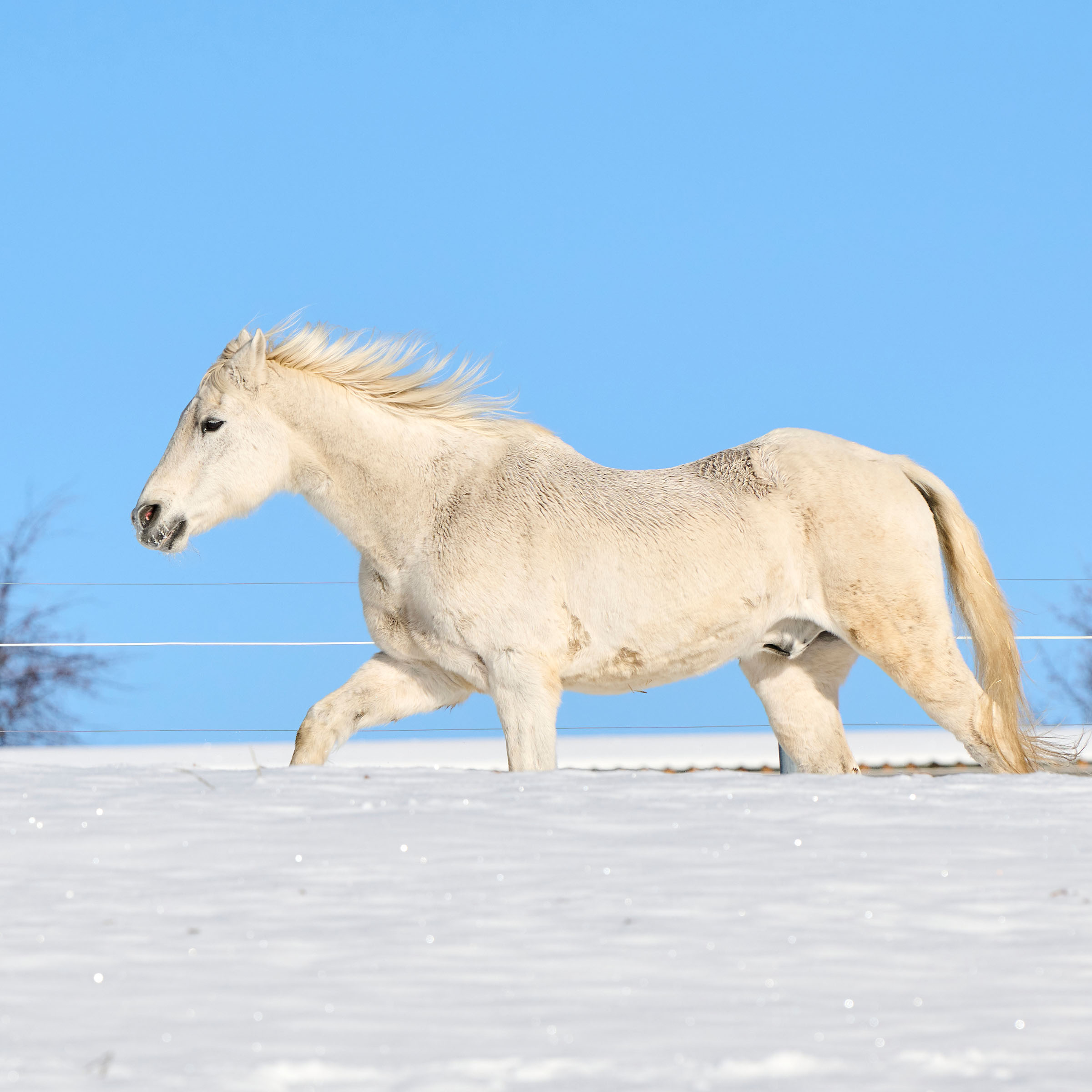 weiss mit kleinen braunen Tupfen; dunkel um die Nüstern