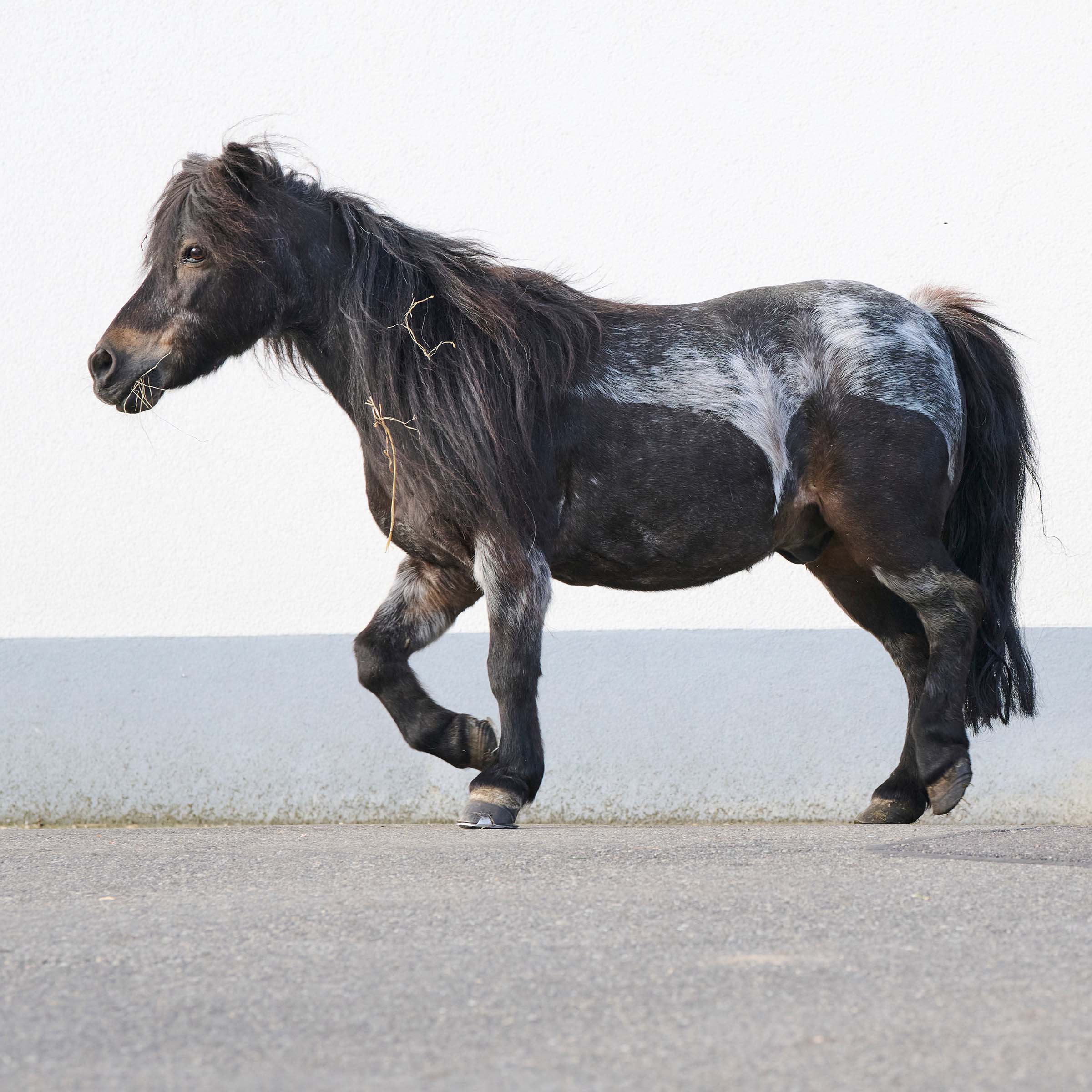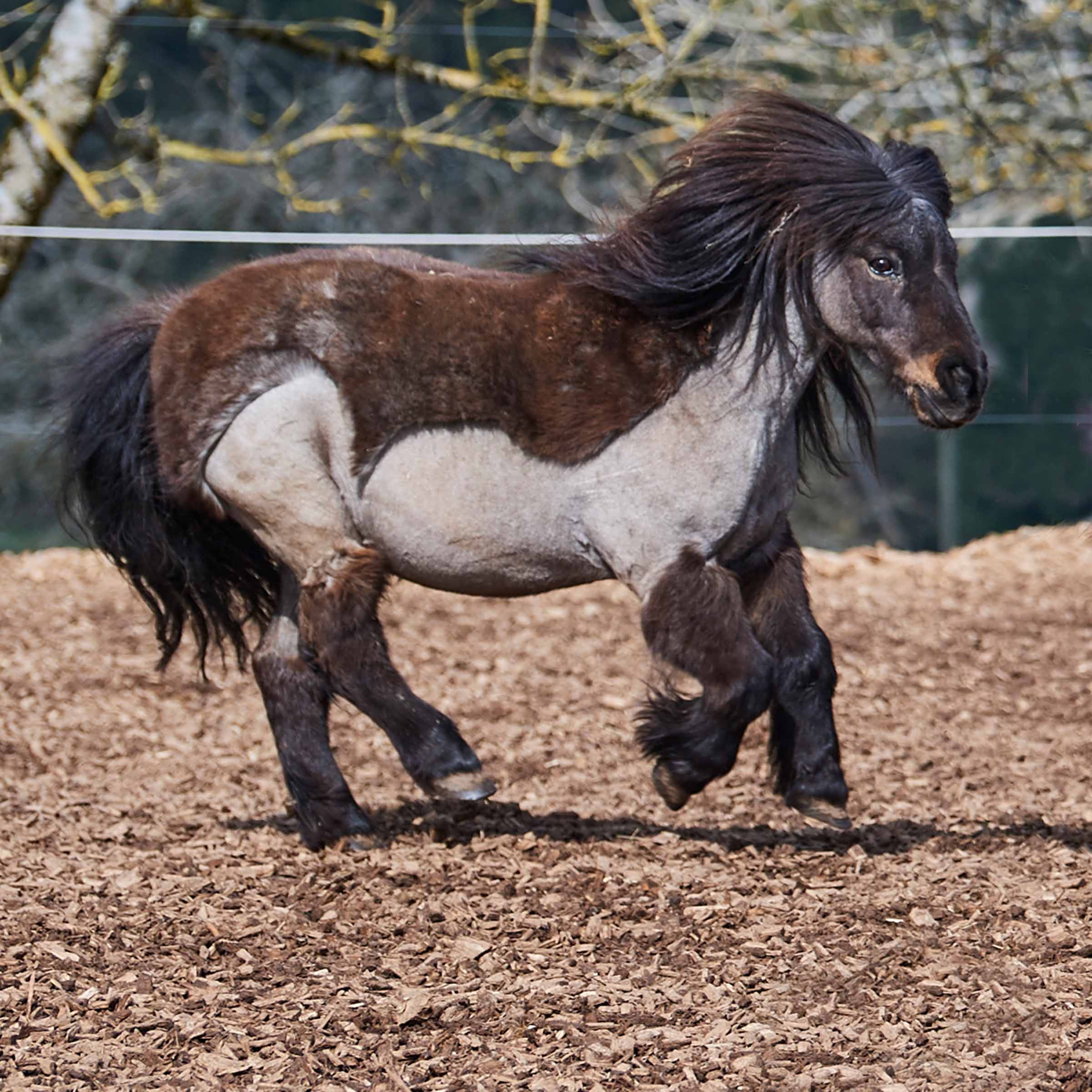Pilzle ist ein Shetlandpony-Wallach, zirka 90 cm gross, geboren am 1. April 1998. Sein Fell ist braun-schwarz mit weissen Stichelhaaren, was ihm ein besonderes Aussehen verleiht. Er wurde in Einsiedeln geboren und kam als Vierjähriger zu seinem letzten Besitzer. Pilzle wurde eingeritten, erwies sich auch als zuverlässiges Kutschentier und nahm an Distanzfahrten teil. Im Jahr 2015 kam er in die Stiftung. Von starkem Temperament und mit viel Selbstvertrauen gesegnet, lebte sich Pilzle schnell in Le Roselet ein und bedrängte die anderen Ponys mit seiner überschäumenden Spiellust. Der niedliche Kerl liess den Pflegern keine Wahl. Um erneut Ruhe in der Ponygruppe herzustellen, entschieden wir uns ihn in die Gruppe der „Grossen“ zu integrieren. Seither ist Pilzle sehr ausgeglichen.