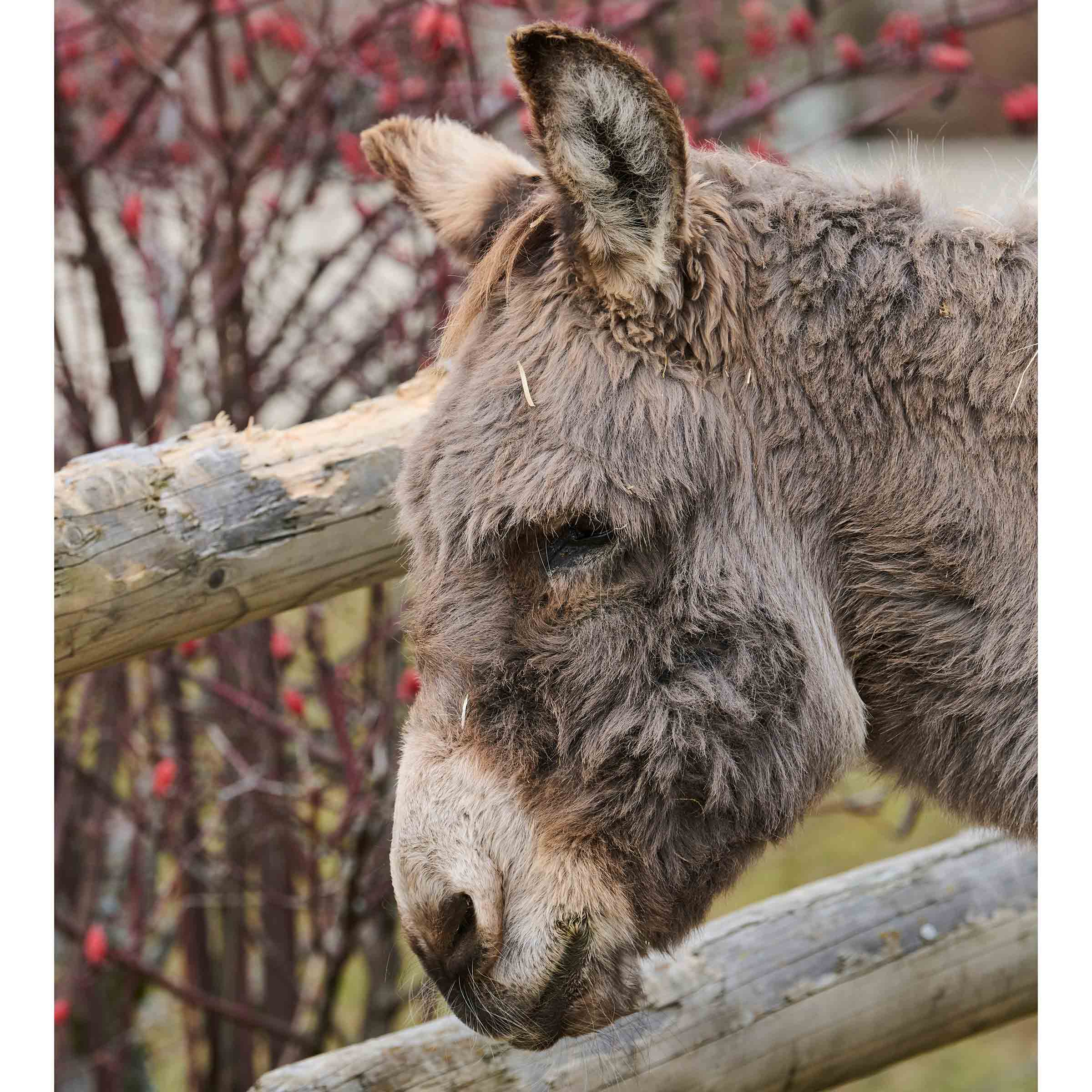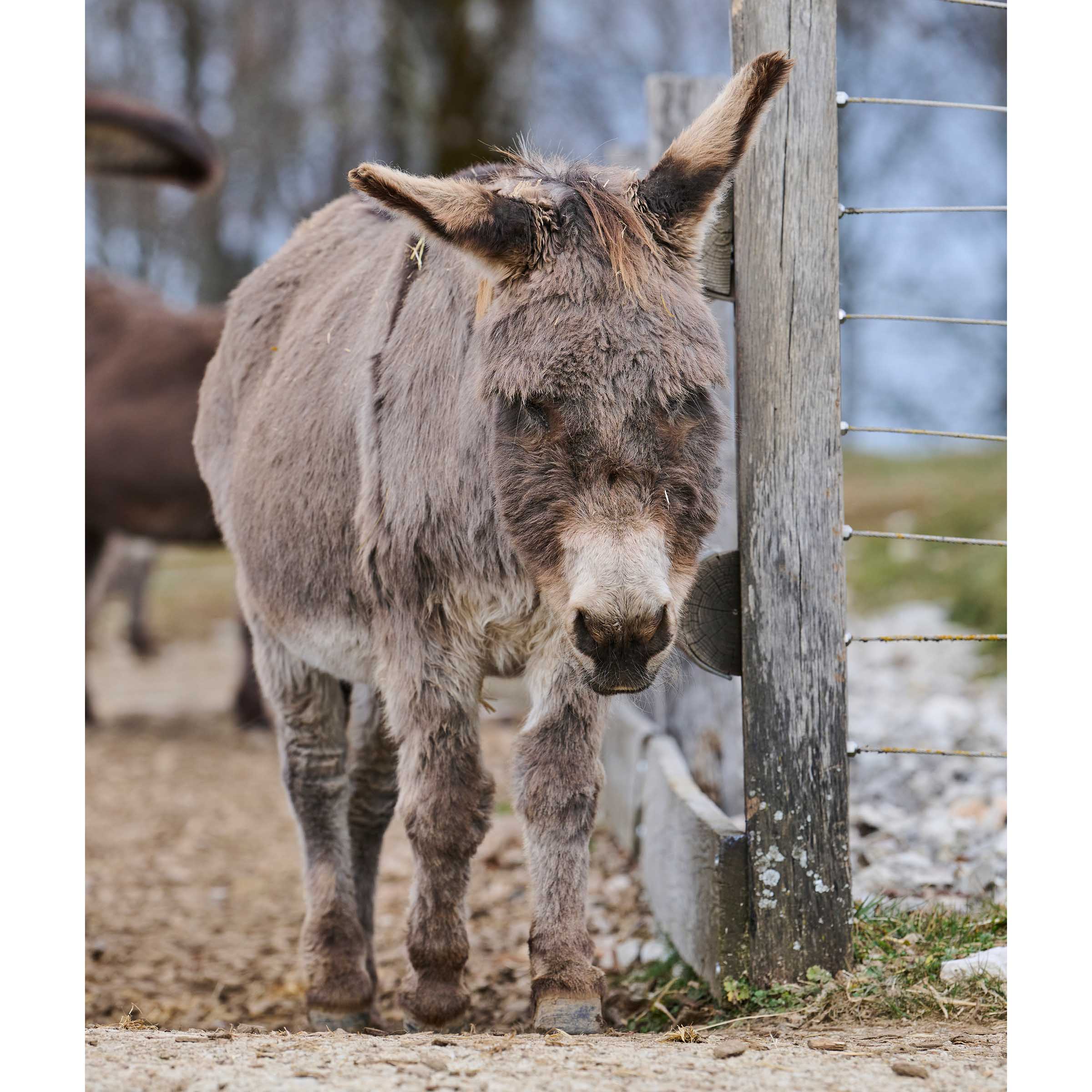 Ringgi ist ein kleiner, grauer Esel, der am 22. Juni 2000 geboren wurde. Er hat immer mit seiner Mutter Nja zusammengelebt und die beiden wurden im Jahr 2000 von einer Dame gekauft. Im Juli 2001 kam Pippo, ein weiterer Sohn von Nja, dazu. Mutter und Söhne blieben bei derselben Besitzerin, bis sie zu uns kamen. Regelmässig wurden sie spazieren geführt oder vor einen kleinen Wagen gespannt. Das Trio besuchte auch die Kinder im Kindergarten und begleitete sie beim Grillen im Wald. Alle drei Esel mochten Schnee, was sehr unüblich ist. Nach dem Tod ihres Besitzers nahmen wir Pippo, Ringgi und Nja im November 2021 als Notfall in unserer Station Maison Rouge auf. Wie es bei Eseln oft der Fall ist, erfolgte die Integration sanft und ohne viel Aufsehen. Uns sind keine gesundheitlichen Probleme bei diesem kleinen, freundlichen Esel bekannt.