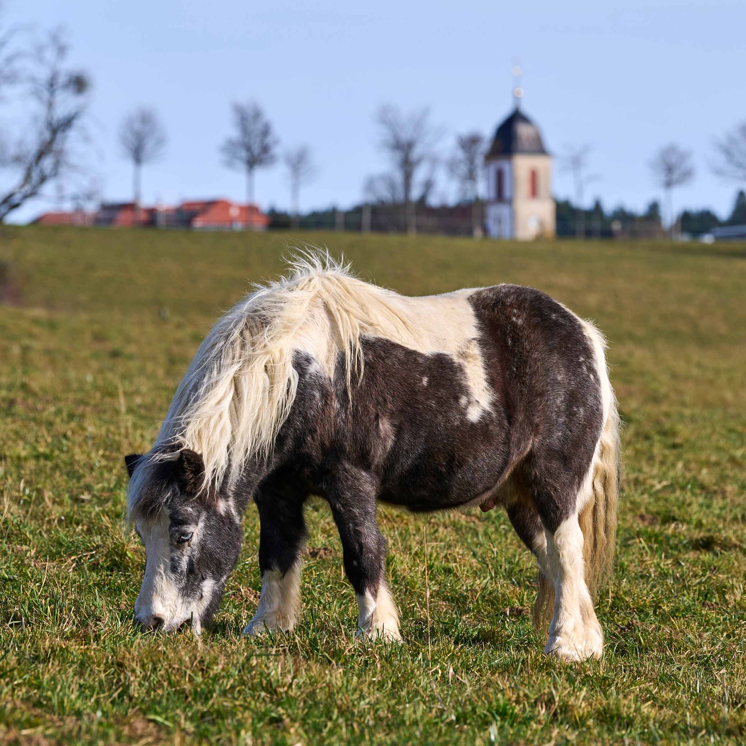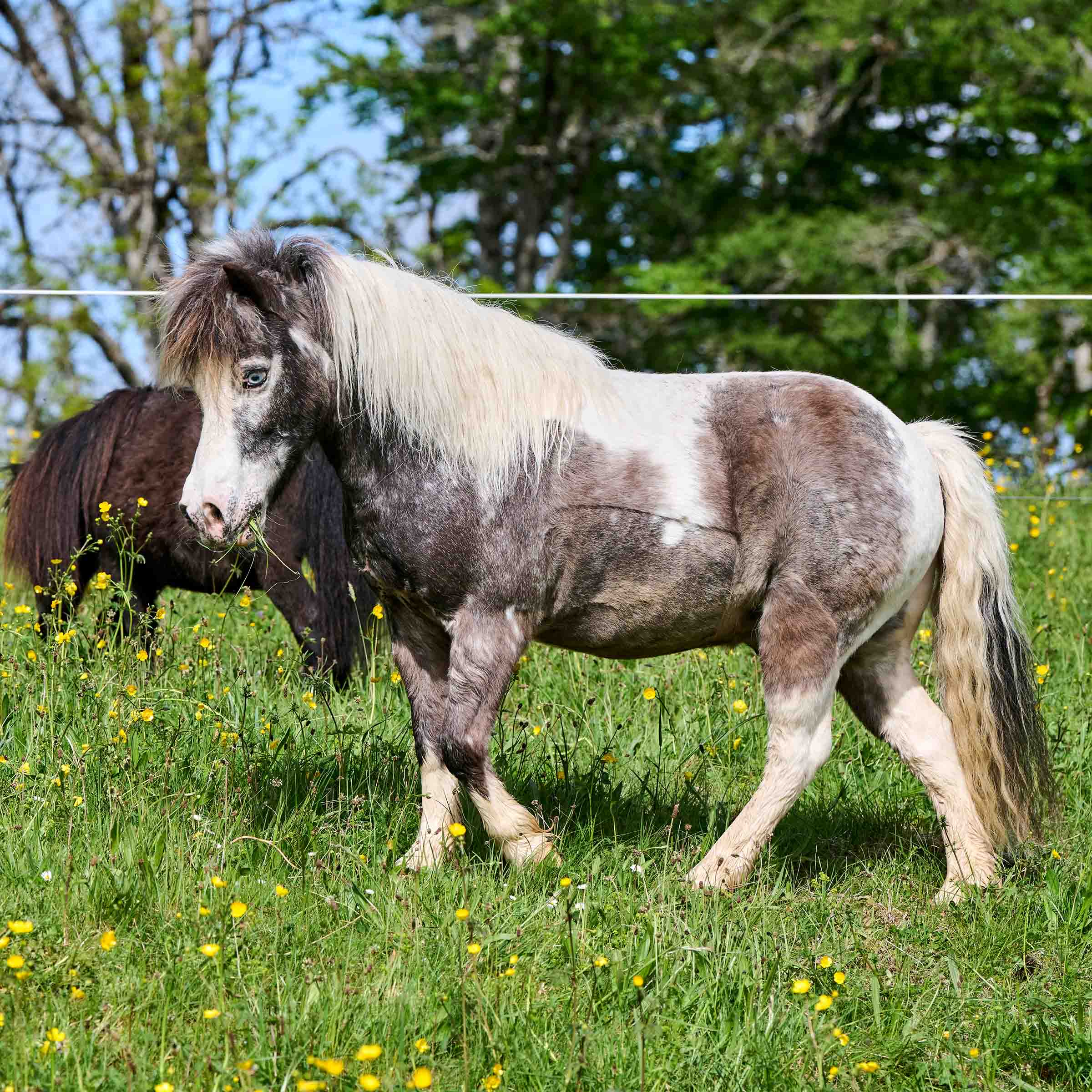 Rocky ist ein Mini-Shetland Pony, etwa 90 cm gross, dunkelbraun-weiss gescheckt und mit blauen Augen, geboren am 11. Juni 2013. Rocky kam im Dezember 2014 in die Stiftung für das Pferd und lebt seither in den Ställen von Maison Rouge, wo er das Leben mit anderen Ponys teilt. Obwohl die Stiftung für das Pferd ein Altersheim für Pferde, Ponys und Esel ist, hat sie sich bereit erklärt, anhand spezieller Umstände, das junge Pony gratis aufzunehmen und sich lebenslang um ihn zu kümmern. Seine ehemalige Besitzerin hatte Rocky aus einer miserablen Haltung geholt, konnte sich aber leider nicht um ihn kümmern. Das Pony benötigte für lange Zeit intensive Pflege aufgrund einer grossen Wunde. Durch reinen Zufall und dank der Herzensgüte einer Tierärztin, konnte unsere Stiftung Rocky retten.