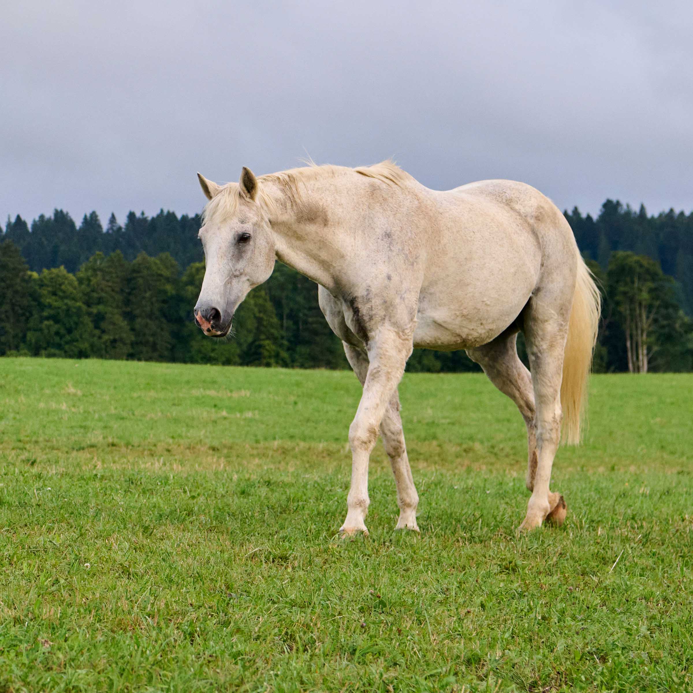 Ti Ponch wurde 2007 von seiner letzten Besitzerin gekauft, als Sie auf der Suche nach einem Turnierpferd war und sich nach einem Proberitt in ihn verliebte. Im Tessin nahm das Paar an Dressur- und Springwettbewerben teil und erlangte die jeweiligen Lizenzen sowie hervorragende Platzierungen. Im Jahr 2015 musste sich die Dame von ihrem Pferd trennen und gönnte ihm den Vorruhestand im Jura, bevor sie es bei der Stiftung anmeldete. So kam Ti Ponch am 12. Dezember 2020 zu uns. Der nette, unkomplizierte Wallach ist nicht dominant, weiss sich aber bei seinen Artgenossen Respekt zu verschaffen. Das Leben auf der Weide und in einer Herde passt perfekt zu ihm. Trotzdem hat er die schlechte Angewohnheit beibehalten, mit dem Kopf zu pendeln, zu «weben», wenn er sich in seiner Boxe befindet.