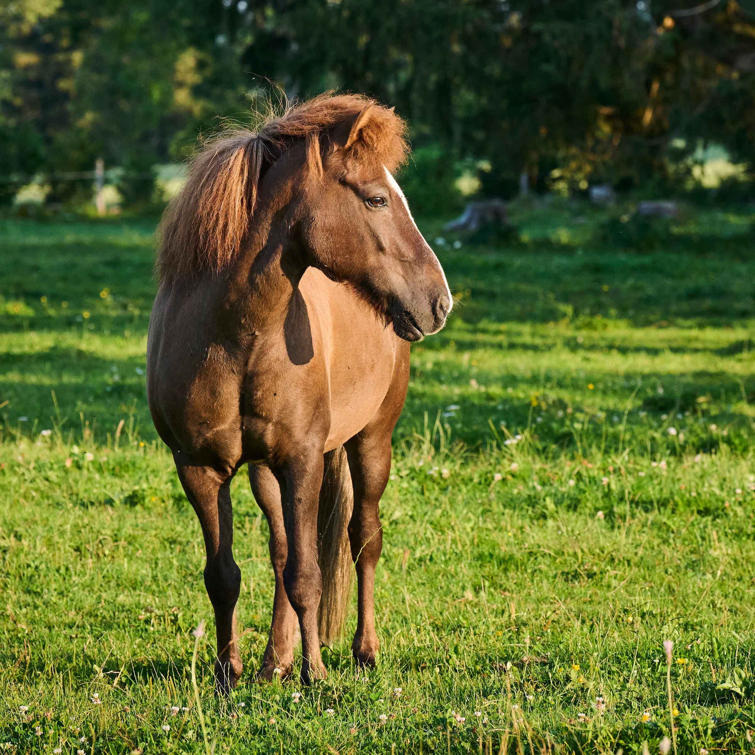 Titus wurde am 12. Juli 2004 in Deutschland geboren. In die Schweiz importiert wurde er im Alter von sieben Jahren an eine Reittherapeutin verkauft. Der energische und verspielte Titus erhielt eine gründliche Ausbildung, die es ihm ermöglichte, als Therapiepferd mit psychisch kranken Menschen zu arbeiten. Titus' Besitzerin hatte alles organisiert, um ihn bei sich zu behalten als sie selbst das Pensionsalter erreichte. Doch eine schwere Krankheit zwang sie schlussendlich, einen dringenden Platz für Titus und seinen Stallgenosse Hervar zu finden. So haben wir die beiden Isländer am 4. Juni 2024 empfangen. Titus leidet am Sommerekzem und wird entsprechend behandelt. Sehr freundlich und gesellig geht Titus gerne zu den Pflegern, um sie zu begrüssen.
