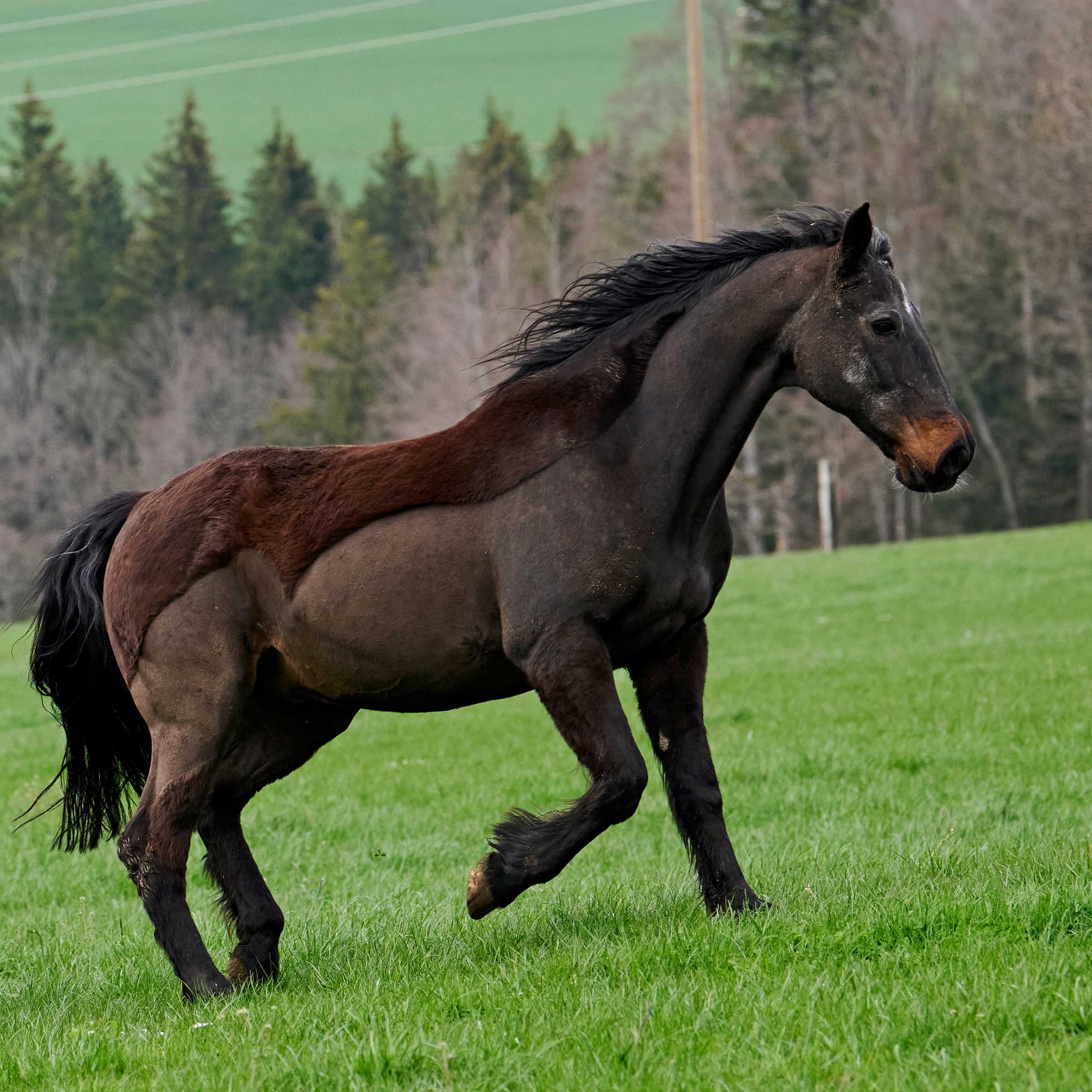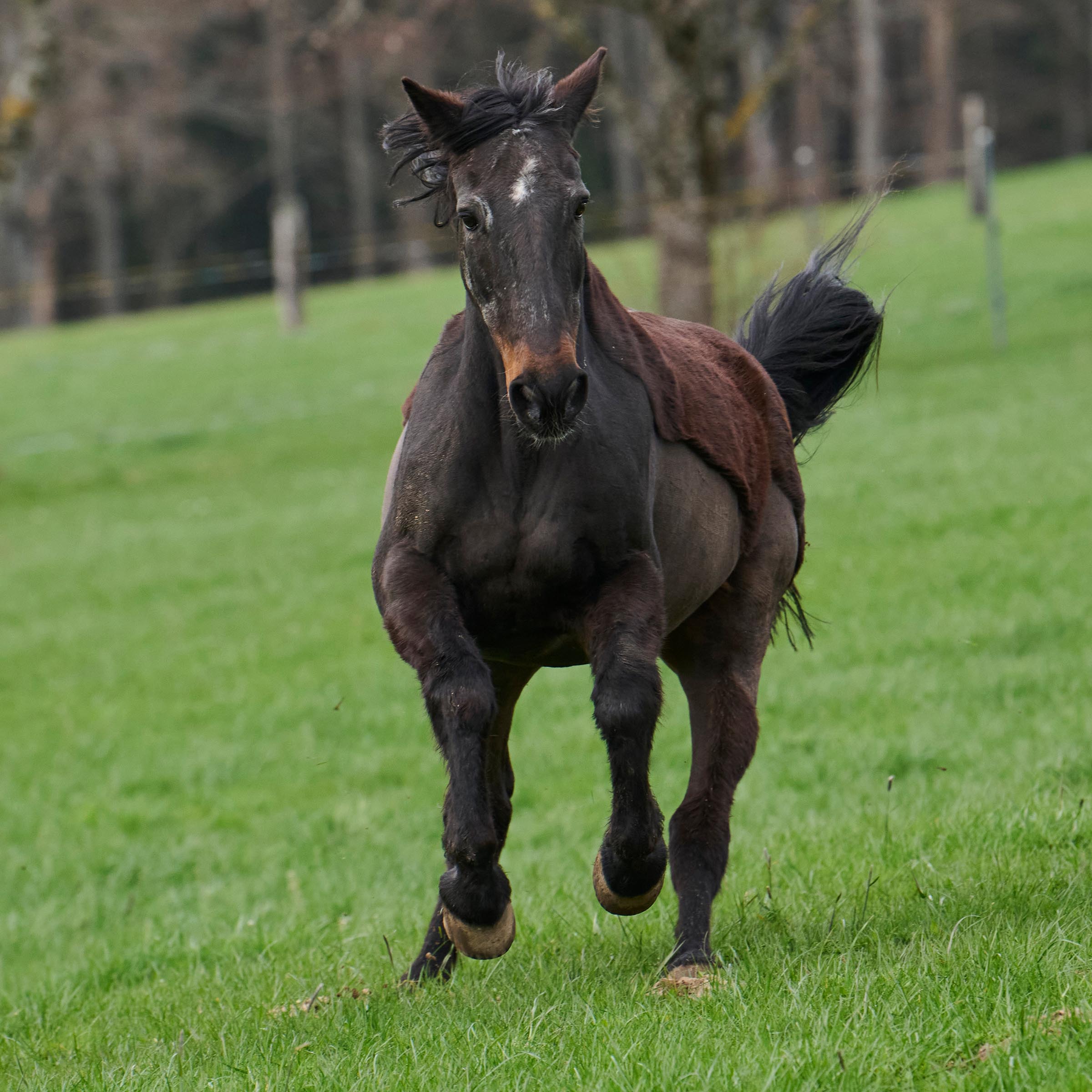 Apparemment, Gus n’était pas apte à courir sur les hippodromes, car il a été vendu à l’âge de trois ans à un marchand, chez lequel une dame venant de Suisse le découvrit. C’est ainsi que le cheval, âgé de juste trois ans, trouva sa propriétaire. Celle-ci utilisait Gus comme cheval de loisirs, faisant de belles balades en été et du travail de dressage au paddock en hiver. Gus avait la particularité assez rare chez un cheval d’aimer tout ce qui était grand et bruyant, tels que tracteurs ou camions, ce qui était naturellement très apprécié. Gus a vite été à l’aise au Roselet. Équilibré, il s’entend bien avec ses congénères. Et c’est un plaisir de le voir trotter!