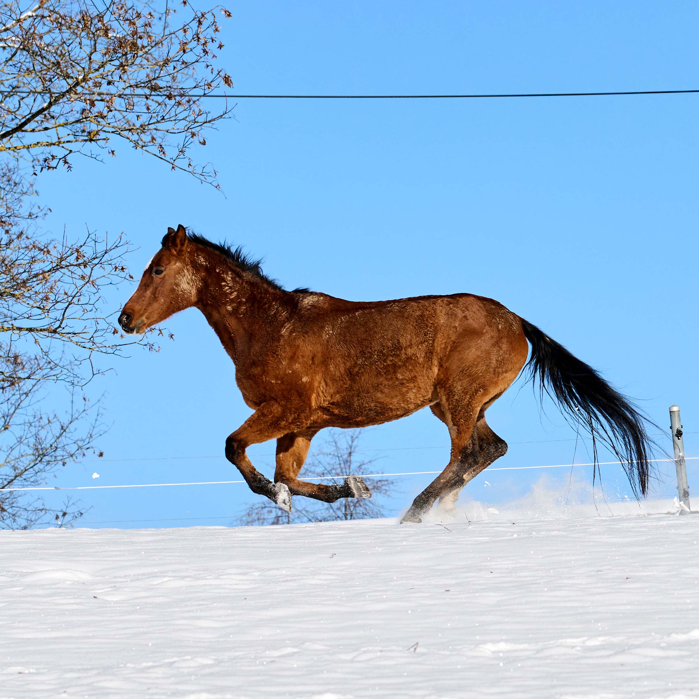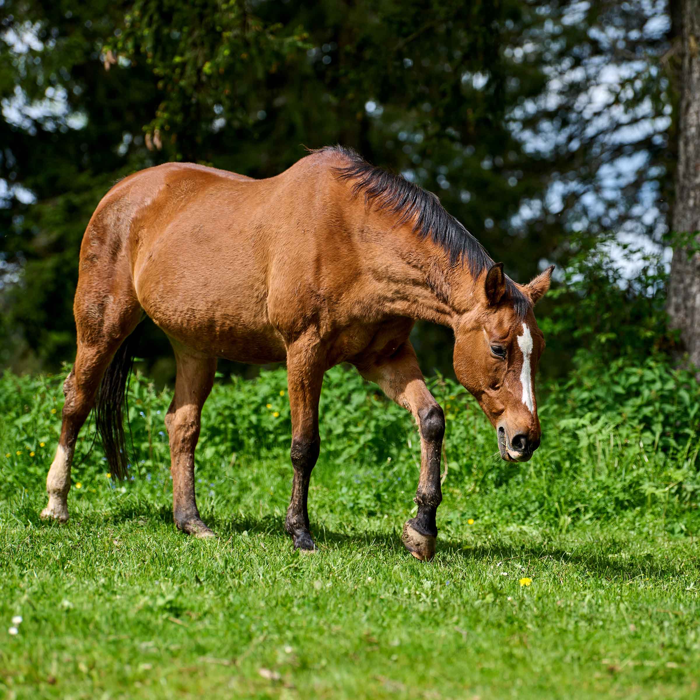 Incara, issue d’une lignée de chevaux de sport de renommée internationale, est née le 10 mars 2002 en Suisse. Elle est devenue gestante très jeune, mais a perdu son poulain. Puis, elle a été débourrée pour devenir cheval de compétition. Avec forte tendance au headshaking, elle a été déclarée non montable. Lorsqu’elle se blessa en tombant, elle aurait dû partir à la boucherie. Sa dernière propriétaire l’a alors achetée au prix de la viande, lui sauvant ainsi la vie. Après deux tentatives sans succès pour la monter, Incara devint alors un heureux cheval de pâturage. Elle vivait avec de nombreux congénères. Pour que sa jument puisse passer le reste de sa retraite en sécurité, sa propriétaire l’a inscrite chez nous. C’est ainsi qu’Incara a déménagé au Jeanbrenin en octobre 2021.