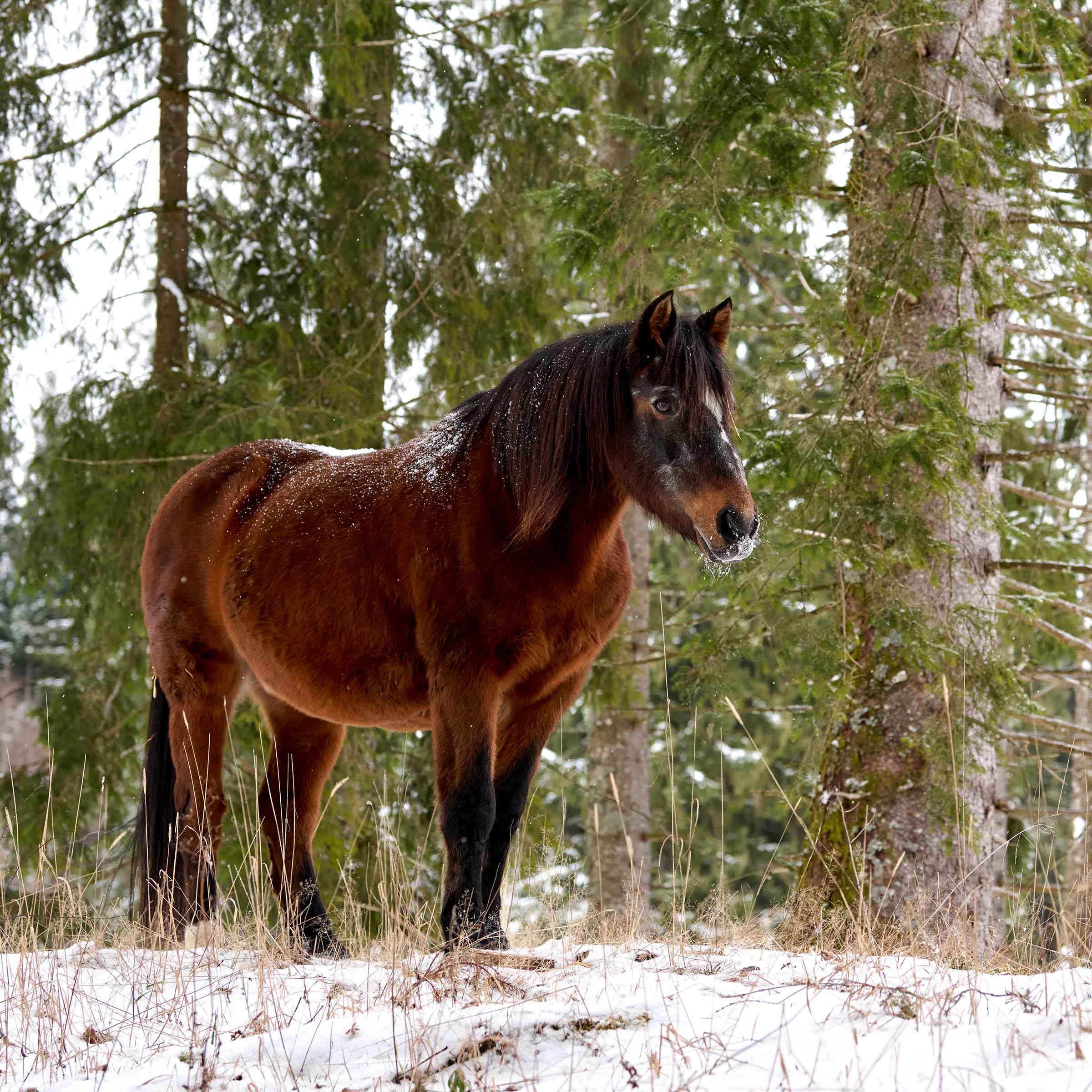 La date de naissance exacte de ce beau brun né en France n’est pas connue, de même que les premières années de sa vie. Ses derniers propriétaires ont acheté ce poney alors âgé de huit ans en mauvaise condition physique. Plusieurs traitements vétérinaires, suivis d’une année complète de rééducation à la longe ont été nécessaires avant que Papillon ne puisse servir de monture pour des leçons données à des enfants. Le brave poney adorait son travail. Papillon est arrivé aux Murs en septembre 2022, ses propriétaires âgés ayant cessé leur activité professionnelle. Exceptionnellement gentil et sociable, Papillon adore manger! C’est très bien ainsi, car il est atteint d’une maladie dégénérative des dents susceptible de lui poser des problèmes à long terme.